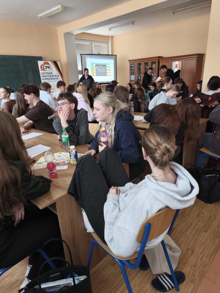 Na Obchodnej akadémii D. M. Janotu v Čadci sme pripravili workshop venovaný téme participácie a fungovaniu participatívnych rozpočtov. Tentoraz sa aktivita uskutočnila vo väčšom rozsahu – súčasne prebiehali dva workshopy, počas ktorých mali študenti príležitosť prejsť si celý proces participatívneho rozhodovania od prvotného nápadu až po spoločnú voľbu riešenia.